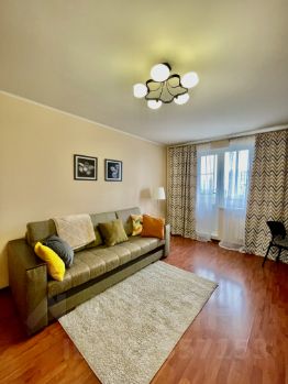 Сдается уютная однокомнатная квартира в 15 минутах пешком от метро Марьино. Квартира располагается на 12 этаже 17-этажного дома, поэтому из окон открывается приятный вид во двор. Общая площадь составляет 40 кв. м, из которых 19 кв. м занимает жилая комната, а кухня — 7 кв. м.