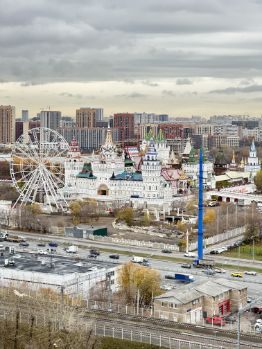 Про апартаменты : ВИДОВАЯ евро двушка с 4 ПАНОРАМНЫМИ ОКНАМИ 1 в гостиной 2 в спальне(угловое) 1 в ванной Окна выходят на ИЗМАЙЛОВСКИЙ КРЕМЛЬ с прекрасным закатом .Только представьте, с каким прекрасным настроением Вы будете просыпаться каждый день, лицезря эту красоту с высоты птичьего полета! А вечером наслаждаться закатом. КАЧЕСТВЕННЫЙ дизайнерский ремонт только что завершён.