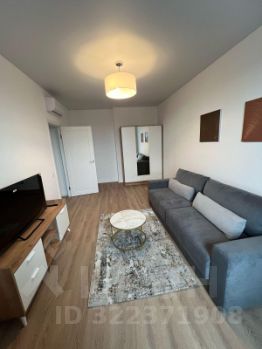 В гостиной раскладной диван, большой шкаф, телевизор с тумбой и еще один шкаф около для дополнительного размещения вещей, также там расположен кондиционер. В спальной комнате, двухспальная кровать с большой тумбой и прикроватными тумбочками. На кухне помимо всей необходимой техники, встроена вентиляция. Есть отдельная комнат-прачичная, в ней новая стиральная машинка.