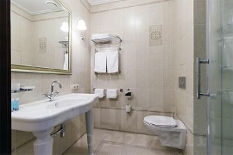 Оснащение номера: двухспальная кровать, раскладной диван, прикроватные тумбочки, телевизор, мини-холодильник, шкаф, ванная комната с душем, санузел, косметические средства, набор полотенец.