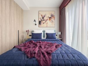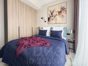 - спальня оборудована двуспальной кроватью, с телевизором, прикроватными тумбами и шкаф.