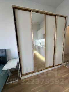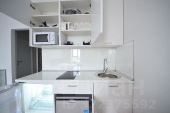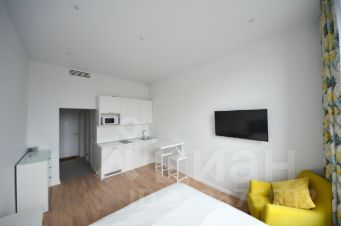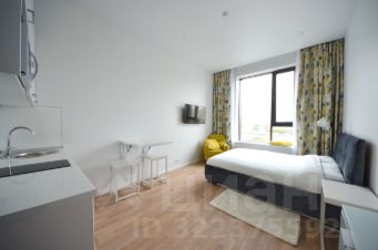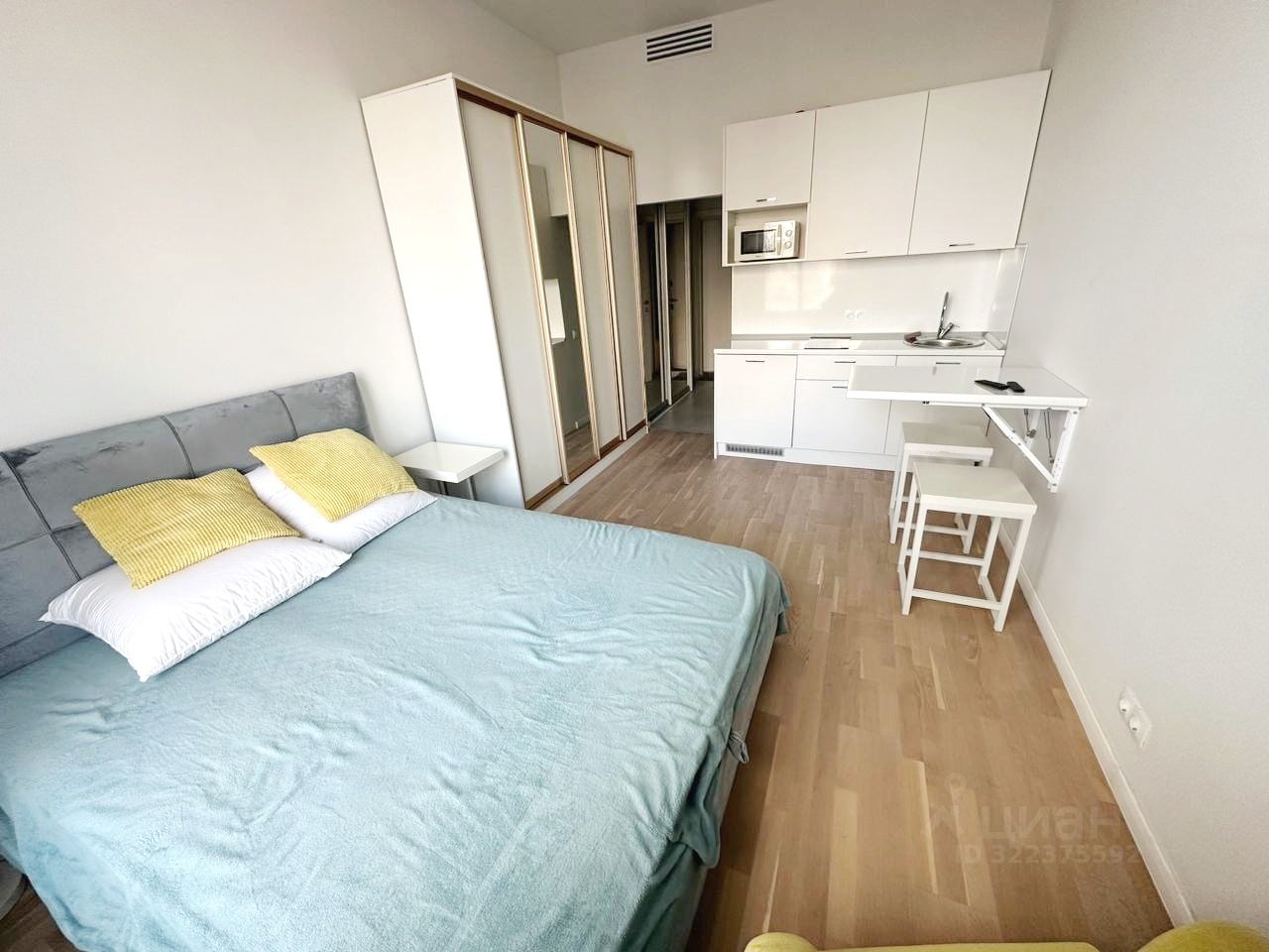 Отдельные плюсы - приятный вид в сторону новой современной элитной застройки, большое окно практически во всю стену и высокие потолки 3,3 метра! Благодаря этому в студии приятно находиться, она выигрывает по сравнению с предложениями в других домах при сдаче в аренду.