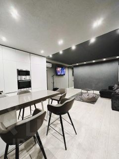 Квартира радует стильным дизайнерским ремонтом и продуманной планировкой. Здесь есть всё необходимое для комфортной жизни: кондиционер, холодильник, посудомоечная машина, телевизор и стиральная машина. На кухне и в комнате установлена современная мебель, а в ванной комнате предусмотрена душевая кабина. Высота потолков составляет 2.64 метра, а также есть уютная лоджия для отдыха.
