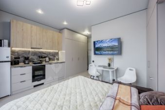 - Оборудованная кухня: варочная панель, духовой шкаф, холодильник, СВЧ, чайник, кофеварка, тостер. Набор посуды для сервировки и приготовления. Чай, кофе, сахар, соль и прочие приятные мелочи;