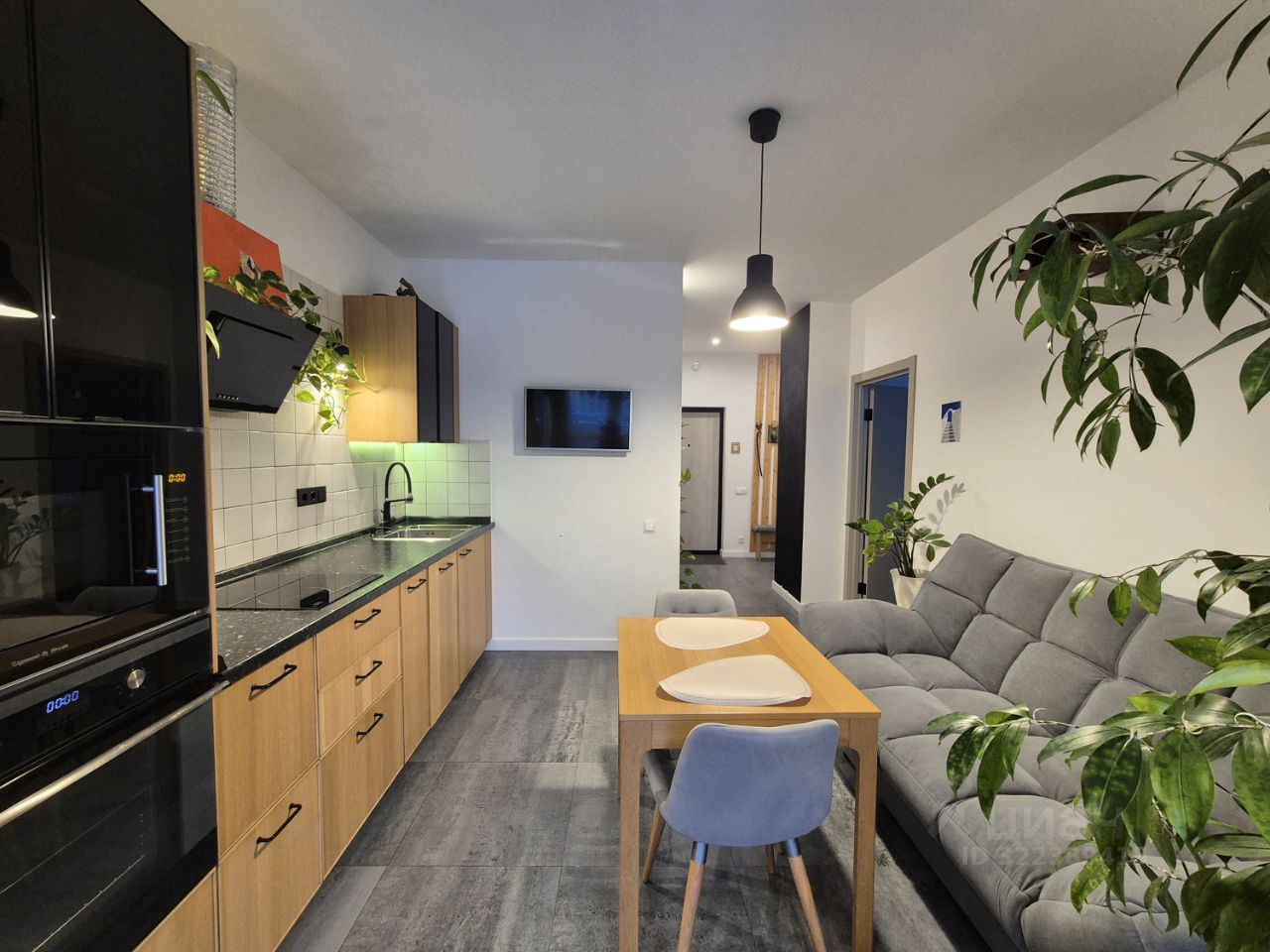 В квартире есть все необходимое для комфортного проживания: кондиционер, теплые полы, кухонная мебель с бытовой техникой (индукционная варочная панель, посудомоечная машина, духовой шкаф, встроенная микроволновая печь, холодильник, под мойкой установлены измельчитель пищевых отходов и фильтр для питьевой воды), есть вся необходимая кухонная посуда — кастрюли, сковороды, тарелки и приборы; для сна — кровать с качественным ортопедическим матрацем в спальне и диван-кровать в кухне-гостиной.