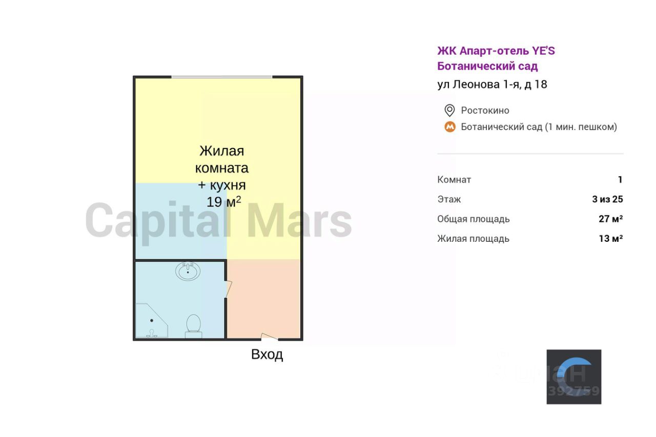 Предлагается студия в апарт-комплексе "YE'S Ботанический сад", рядом с одноименной станцией МЦК. Светлый интерьер дополнен необходимой для комфорта мебелью. На кухне - современная техника, включая духовую печь. Установлен кондиционер.