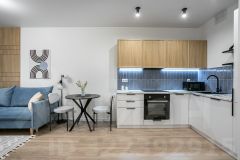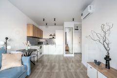 Вся необходимая техника для жизни: встроенный холодильник, стиральная машина, посудомоечная машина, вытяжка, варочная панель, духовой шкаф, микроволновая печь, кондиционер.