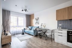 Отдельная спальня, кухня с гостиной , прихожая, обьеденненый санузел.
