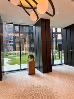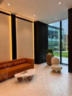 В холле входной группы дома находится консьерж-сервис, доступ на этажи индивидуальный. На внутренней территории комплекса детская площадка, крытый небольшой зеленый садик, есть зона для барбекю, много зеленых деревьев и декоративных клумб с цветами.