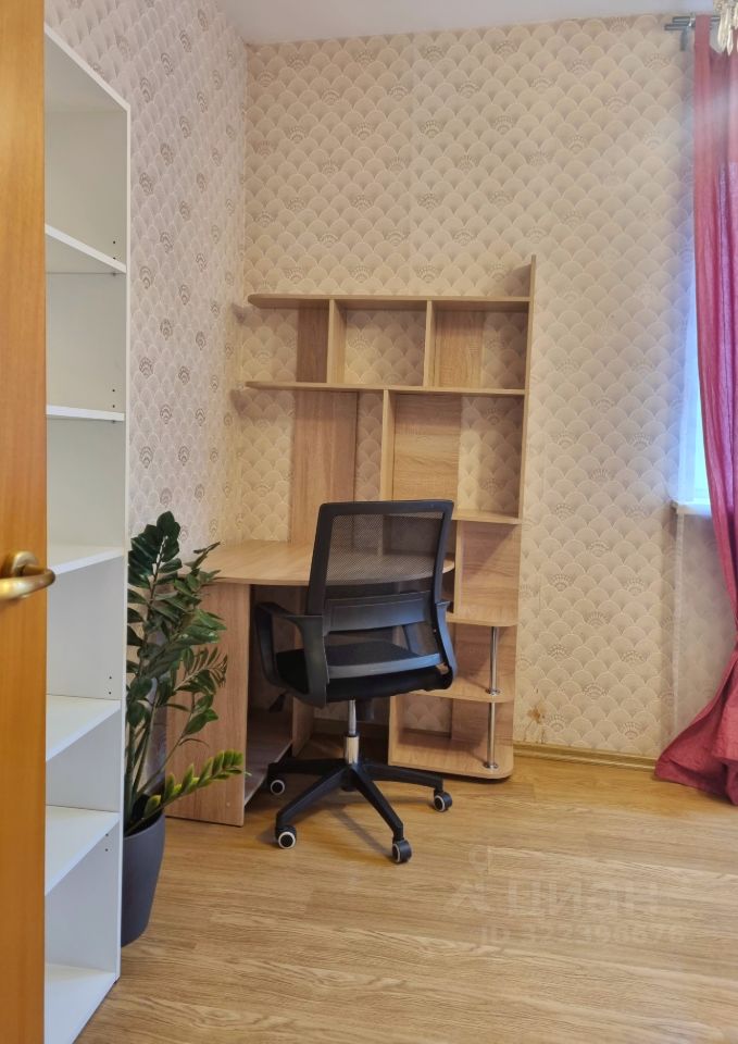 The bedroom is standart (14 m2). There is a wardrobe, a bed and a desk with a chair. So it may be used as a study.