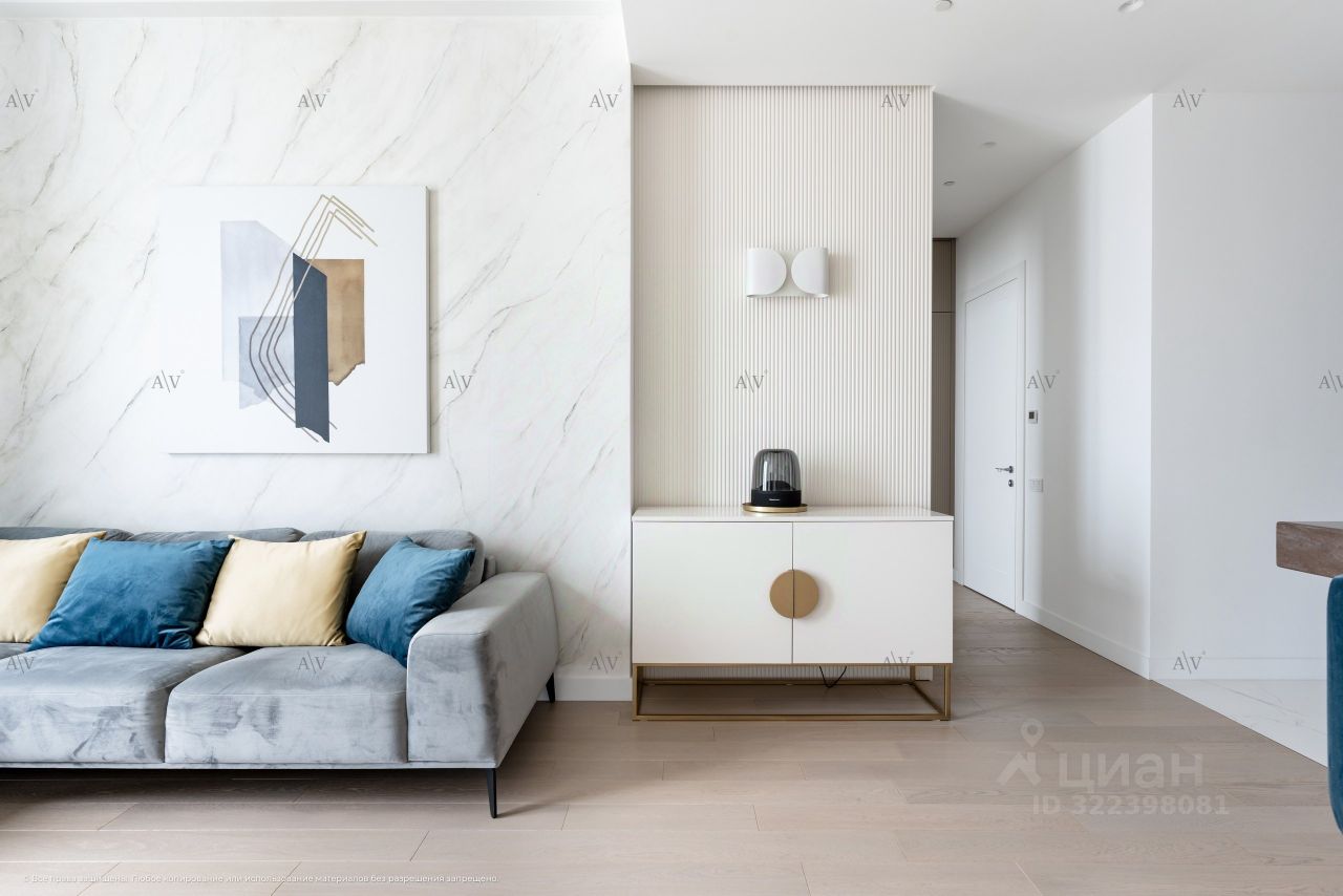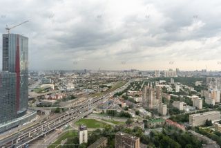 Гостиная: Просторная, с панорамными окнами и видом на Москву.