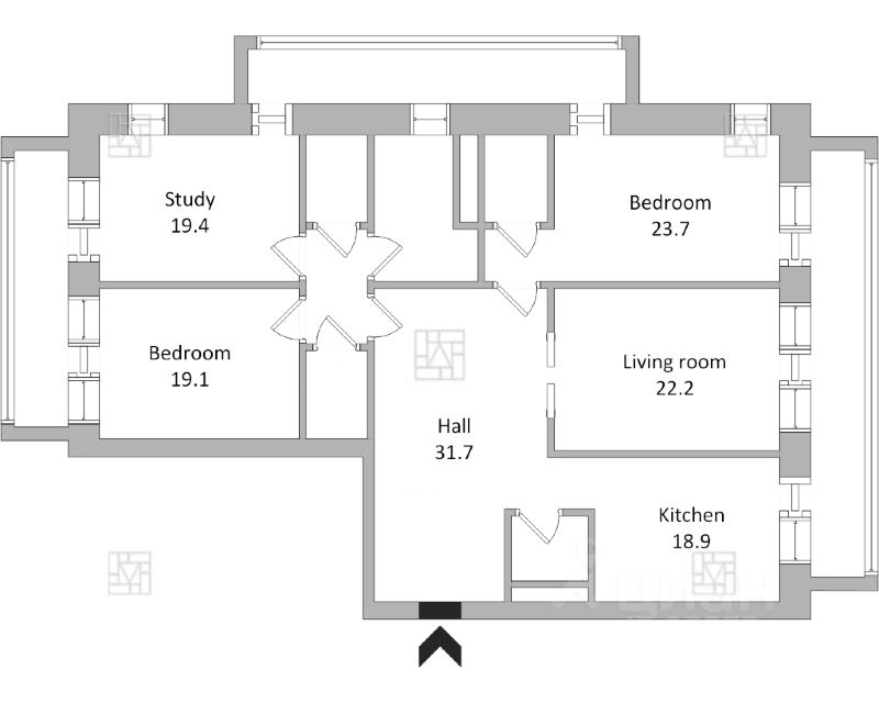 По планировке: просторная и светлая гостиная, хозяйская основная спальня со своим санузлом с окном и гардеробной, вторая спальня, кабинет, второй санузел, есть еще одна дополнительная гардеробная, кладовая. В квартире имеются выходы на три лоджии.