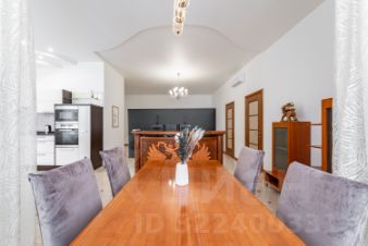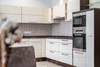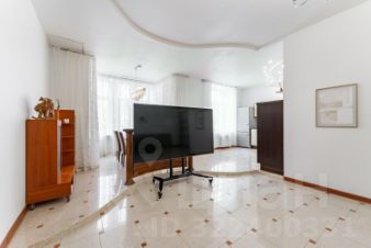 В гостиной комфортный диван и телевизор с диагональю 85 дюймов. Кухнонный гарнитур и большая часть бытовой техники в квартире Miele. Почти все окна выходят на арбат, но при этом в квартире очень уютно и тихо.