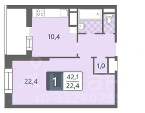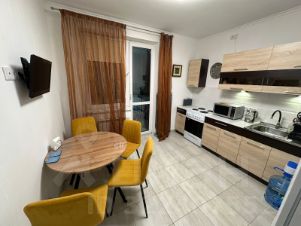 Общая площадь 42,1 кв.м., жилая 22,4 кв.м., кухня 10,4 кв.м. Выполнен качественный ремонт. Квартира оборудована всем необходимым для проживания. К комнате угловой диван, вместительный шкаф, двухспальная кровать с матрасом Аскона, кондиционер, телевизор, есть рабочая зона. На кухне имеется кухонный гарнитур, плита с духовым шкафом, двухкамерный холодильник, печь СВЧ, телевизор; гардеробная комната, стиральная машина. В квартире установлена система умный дом (управление светом, ТВ, колонкой). Застекленная лоджия.