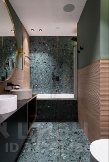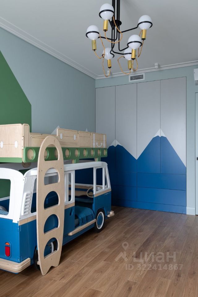 Планировка: КВАРТИРА НА 2 стороны, гостиная-кухня, гостевой санузел, спальня с гардеробной и совмещенным санузлом с ванной в одном крыле, детская комната в другом. Ремонт выполнен в современном стиле с использованием натуральных высококачественных материалов.