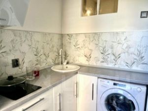 •КУХНЯ- 5,5 кв.м. полностью оборудована: варочная индукционная панель из 2х конфорок, двухкамерный холодильник, стиральная машина, электрический чайник и большая столешница для комфортного приготовления любимых блюд.