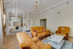 Планировка: просторная кухня-гостиная с обеденной зоной, две спальни, два совмещенных санузла с ванной и душевой кабиной, две гардеробные комнаты, прихожая. Квартира меблирована, укомплектована необходимой бытовой техникой. Высота потолка 3.35м.