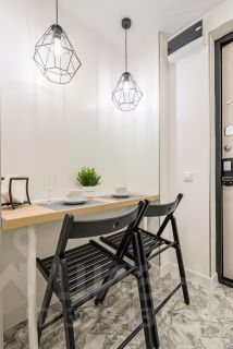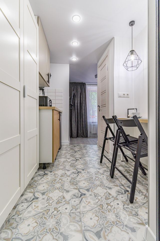 Студия с дизайнерским ремонтом, что делает ее особенно привлекательной. В комнате есть вся необходимая мебель, что позволит вам сразу же заселиться. Квартира оснащена современной техникой: холодильник, телевизор и стиральная машина. Санузел совмещенный, оборудован душевой кабиной. Высота потолков составляет 2.64 метра, окна выходят во двор, что обеспечивает тишину и уют.