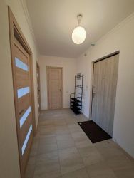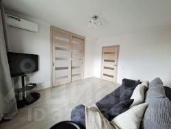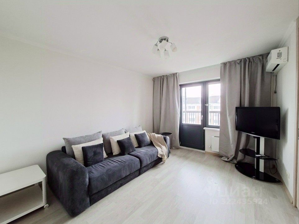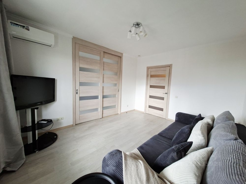 Квартира сдается впервые, на длительный срок. Квартира обставлена необходимой мебелью и оснащена бытовой техникой: в комнате раскладной диван с подушками, журнальный столик, телевизор, кондиционер; на кухне модульная сборная кухня, электрические плита и духовой шкаф, вытяжка, посудомоечная машинка, стиральная машинка, двухкамерный холодильник. Санузел совмещенный с ванной. В коридоре шкаф-купе. Из комнаты выход на большую застекленную лоджию-веранду. Окна во двор, тихо.
