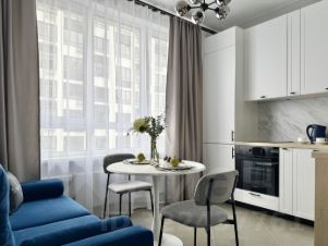Бытовaя тeхникa: xoлoдильник, посудомоечная машина, варочная панель, духовой шкаф, вытяжка, электрический чайник, микроволновая печь, стиральная машина, кондиционер, телевизор.