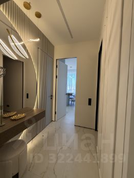Квартира оснащена всей необходимой техникой: стиральная машина с функцией сушки, посудомоечная машина, холодильник с морозильной камерой, измельчитель, кондиционеры и система подогрева полов.