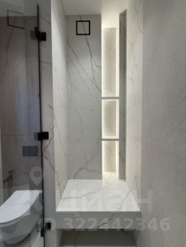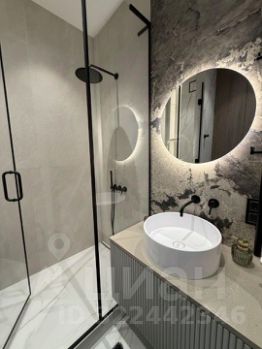 Квартира с дизайнерским ремонтом, полностью готова для комфортного проживания. В комнате есть мебель, а на кухне установлена вся необходимая техника: кондиционер, холодильник, посудомоечная и стиральная машины, а также телевизор. Санузел совмещенный и оборудован современной душевой кабиной.