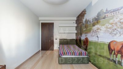 Спланирована гостиная-столовая с зоной кухни, мастер-спальня с ванной комнатой и рабочей зоной, три детские спальни с общей ванной комнатой, две гардеробные, постирочная, гостевой санузел, прихожая. Квартира полностью меблирована и оборудована бытовой техникой, включая контактный гриль. Установлены акустическая система Hi-Fi, система видеонаблюдения и сигнализация, подогрев полов. Немецкая стиральная машина с сушкой Мiele. Благодаря эркерным окнам и потолкам высотой три метра пространство наполнено светом, из окон открывается вид в тихий двор. Предусмотрено машино-место в подземном паркинге за дополнительную плату.