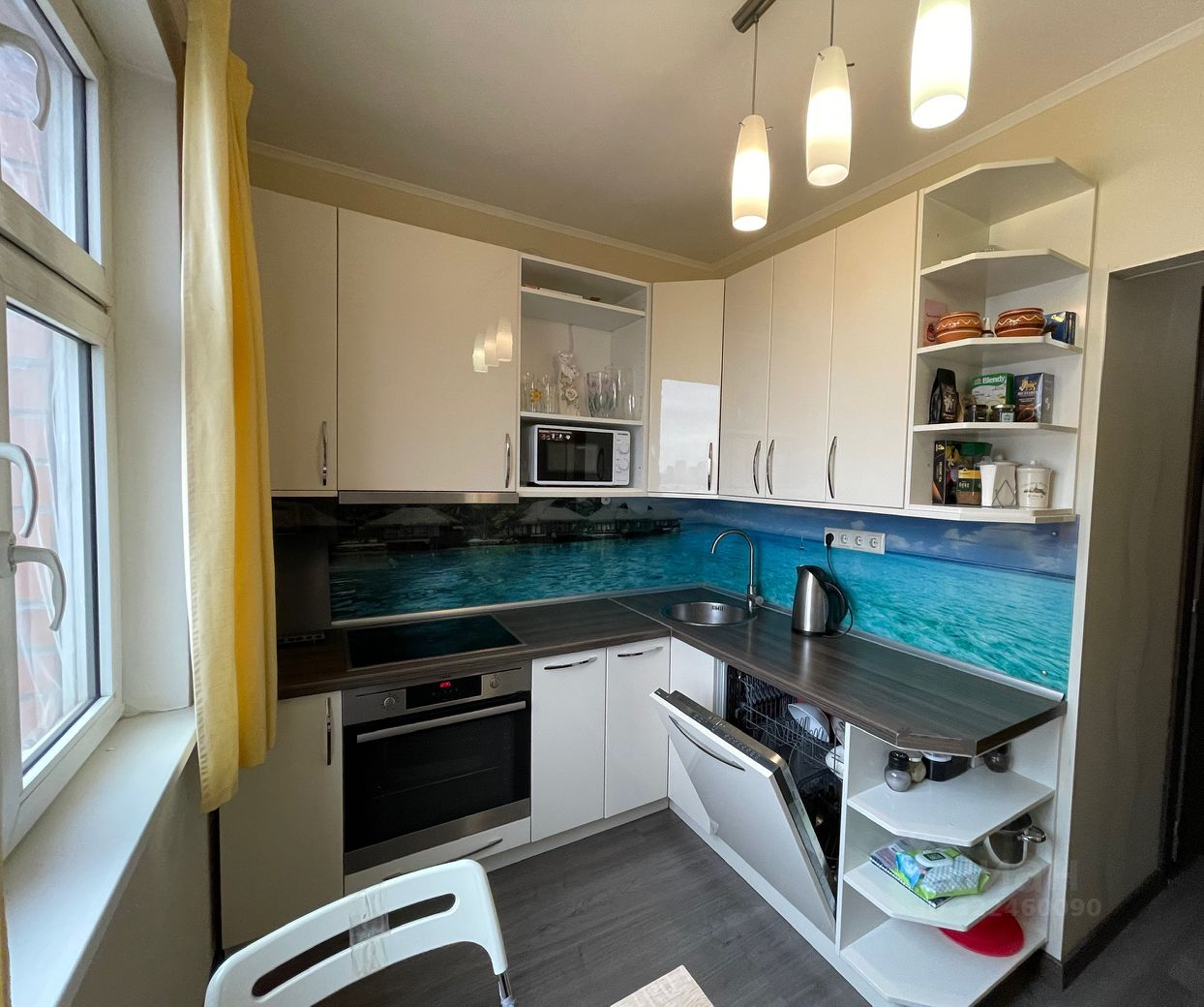 Квартира полностью меблирована: встроенный кухонный гарнитур, варочная панель, духовой шкаф, посудомоечная машина, стиральная машина, холодильник, раскладной диван, двуспальная кровать, телевизор, кондиционер, шкафы. Застекленный балкон.