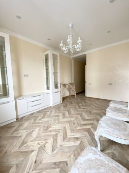 Всё, как на фото, дополнительно в комнате , которая без мебели, устанoвлeн удобный раскладной диван. В другой комнате, где расположена кровать, возле кровати стоят две прикроватные тумбы. В каждой комнате повесили тюль со шторами. Есть кондиционер. Санузел совместный в плитке. Застекленная лоджия. Видеодомофон.
