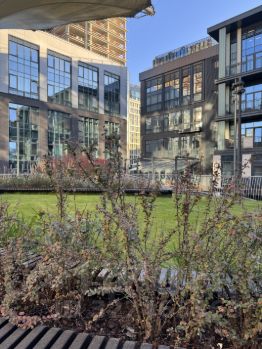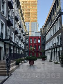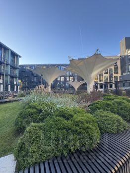 Во дворе оформлена зона отдыха на зеленой террасе, арт-пространство и детская площадка. 3-х уровневая система охраны. Вход по магнитной карте. Для автомобилей открытая парковка(аренда от управляющей компании).
