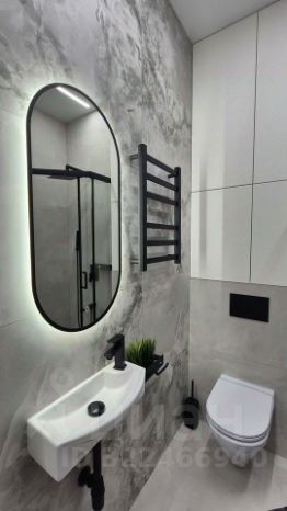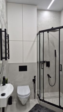 Санузлы оборудованы душевой кабиной, ванной, стиральной машиной, гигиеническим душем и системой от протечки воды. Во всей квартире уложена шумоизоляция, под плиткой установлен теплый пол.