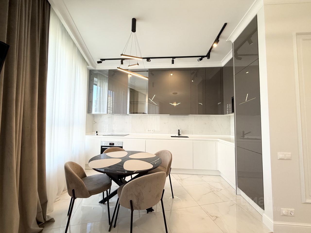 Апартаменты впечатляют дизайнерским ремонтом и продуманной планировкой. В квартире есть всё необходимое для комфортного проживания: кондиционер, холодильник, посудомоечная и стиральная машины, телевизор. Просторная кухня площадью 15 кв. м оборудована современной мебелью и техникой. Совмещённый санузел с ванной оформлен в современном стиле.