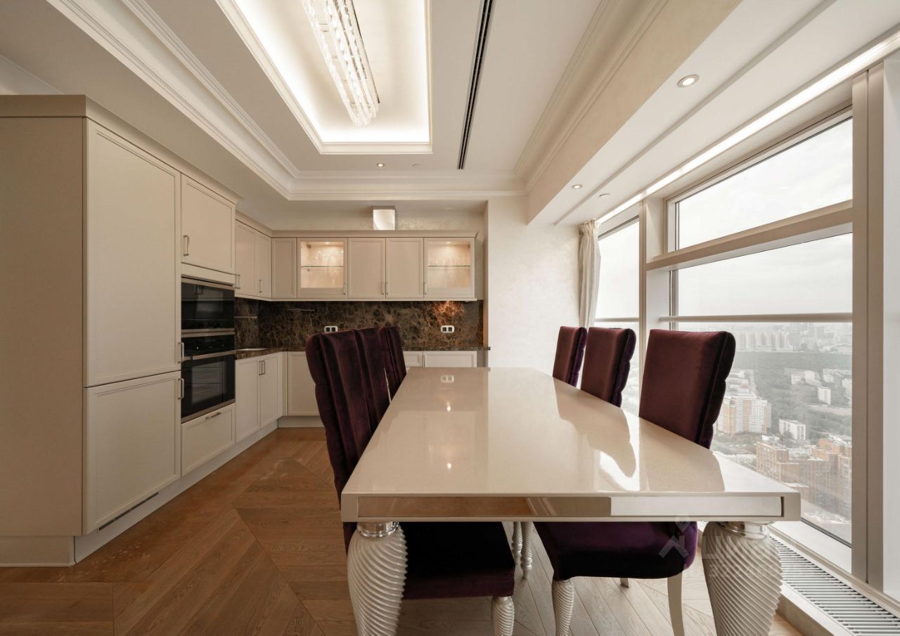 Внутренняя отделка выполнена в стиле Нео классика в спокойных бежевых тонах с использованием дорогостоящих материалов от ведущих мировых производителей. Апартамент полностью меблирован и оснащен необходимой бытовой техникой. Окна выходят на город и Сити. Презентабельная тихая входная группа только для жильцов башни, консьерж сервис, охрана, видеонаблюдение на этажах, пропускная система на входе.