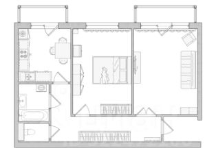 - гоcтинaя (раскладной диван, телевизор с тумбой, кондиционер,торшер, выход на лоджию)