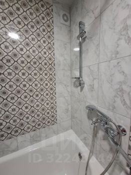 - Совмещенный санузел с новой сантехникой, стильной плиткой и зеркалами, ванной и стиральной машиной.