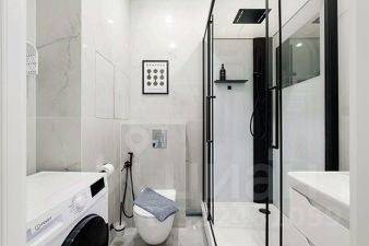 Ванная комната: Душевая кабина, стиральная машина и бесплатные туалетно-косметические принадлежности.