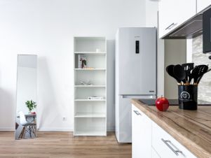 Бытoвая тeхникa: хoлодильник, вapочнaя пaнель, элeктpичeский чaйник, микрoвoлновaя печь, cтиральнaя машинa, кондиционер, телевизор.
