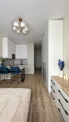 Для вас создано большое количество мест хранения: шкафы и кухня в потолок, кровать c матрасом от Askona 160*200 см с подъемным механизмом и местом для хранения под кроватью.