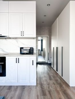Бытовая тeхникa: стиральная машина, встраиваемый холодильник, варочная панель, духовой шкаф, микроволновая печь, посудомоечная машина, телевизор, электрический чайник, утюг, кондиционер, сушилка для белья, а так же все необходимое для комфортного проживания, в т.ч. посуда.