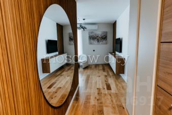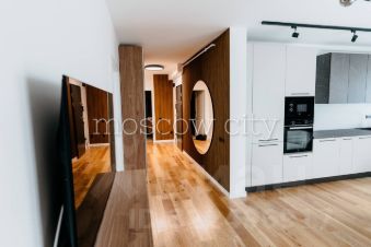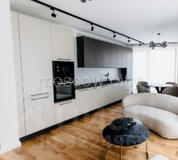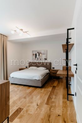 Выполнена новая дорогостоящая отделка в современном стиле с применением натуральных материалов по авторскому проекту, квартира меблирована и оснащена функциональной бытовой техникой, современными высококлассными инженерными системами (приточно-вытяжная вентиляция, кондиционирование), в санузлах установлена сантехника премиум-класса.