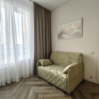 Высокие потолки 3 метра. Через большие окна в квартиру с видом на реку попадает много естественного света.