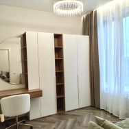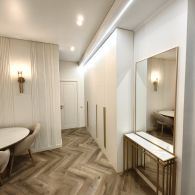 Планировка квартиры очень функциональная: просторная кухня-гостиная, две изолированные комнаты, гардеробная комната, санузел.