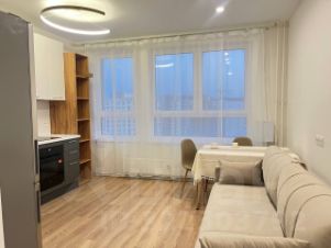 Уютная студия расположена на 12 этаже в ЖК Молжаниново, сделан ремонт, есть все необходимое для комфортного проживания: мебель (двух спальный диван, шкаф для хранения вещей, большой и маленький столы), техника (холодильник, посудомоечная машина, стиральная машина) и посуда.
