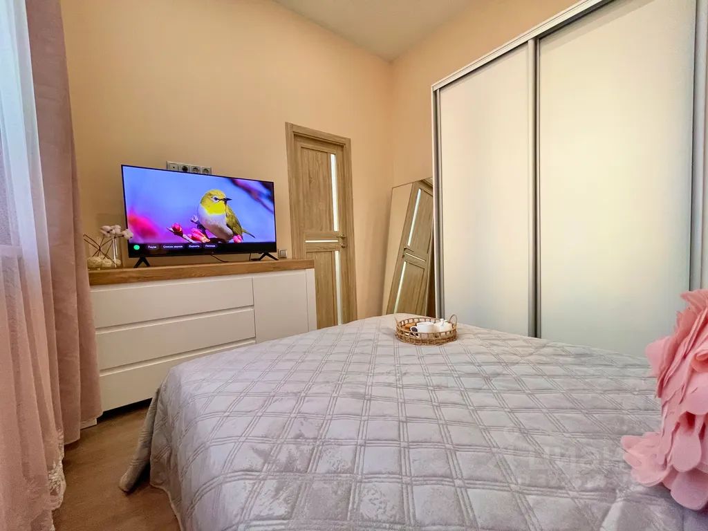 Двуспальная кровать, а в случае необходимости разместиться большой семьей можно разложить диван и кресло-кровать.