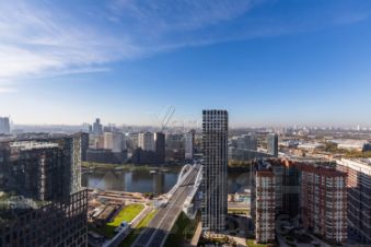 Расположена на 32 этаже с потрясающим видом на Москва-реку по адресу: Шелепихинская набережная, дом 34к3зд6.