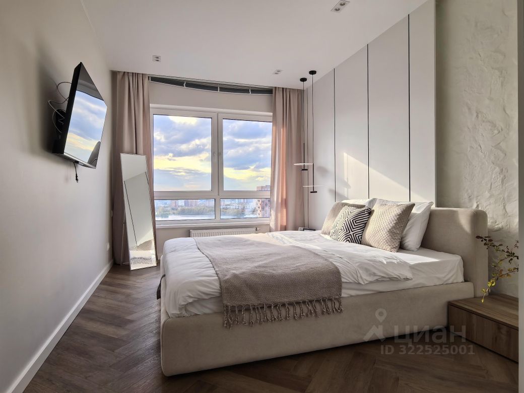В квартире просторная кухня гостиная и две изолированные комнаты. В обеих комнатах сделана дополнительная шумоизоляция стен и потолка. Окна на одну сторону, в направлении Москвы реки.
