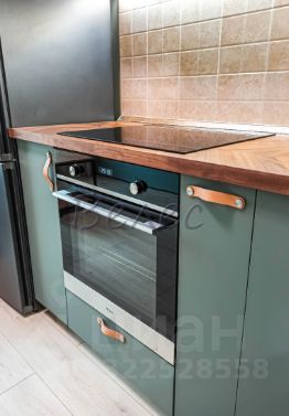 На кухне гарнитур со встроенной бытовой техникой западных производителей: посудомоечная машина, варочная панель и духовой шкаф Haier, вытяжка.