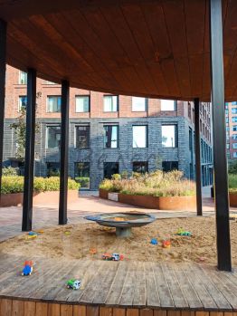 Двор без машин, площадка для детей с горками во дворе, workout площадка. Высокоскоростные лифты Kone, есть подземный паркинг. Солидное окружение.