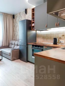Квартира укомплектована всей необходимой мебелью и бытовой техникой. Планировка: кухня-гостиная, спальня, раздельный санузел.