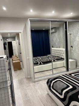 Квартира выполнена в дизайнерском стиле, что придаёт ей уникальный и современный вид. Здесь есть вся необходимая мебель как на кухне, так и в комнате. Для вашего удобства в квартире установлены кондиционер, холодильник, телевизор и стиральная машина. Санузел совмещенный, оснащён ванной. Окна выходят на улицу, что обеспечивает хорошее естественное освещение.